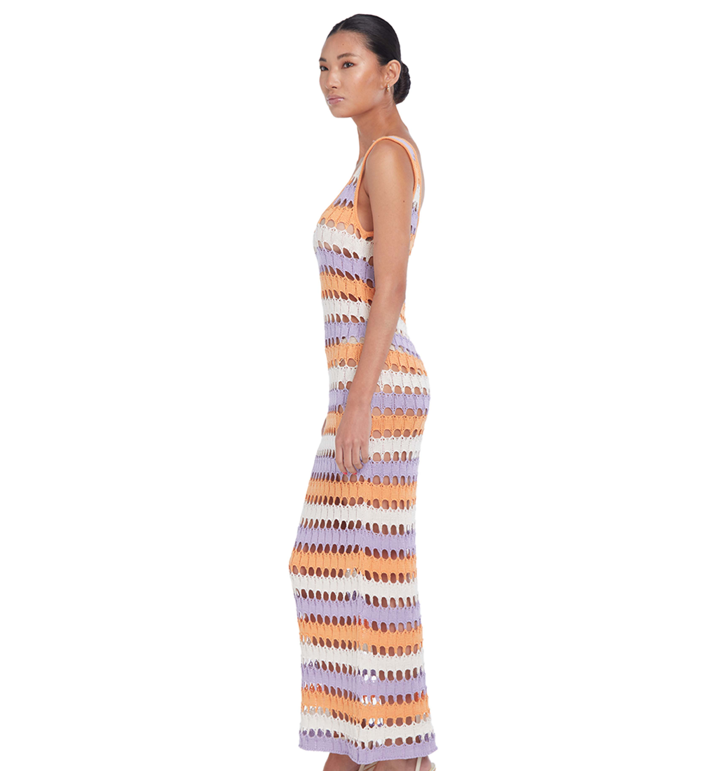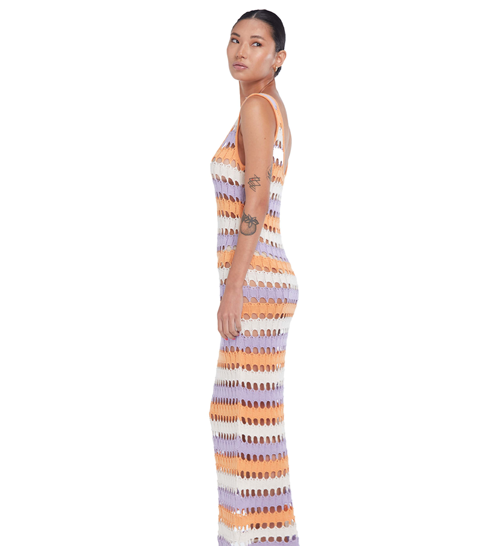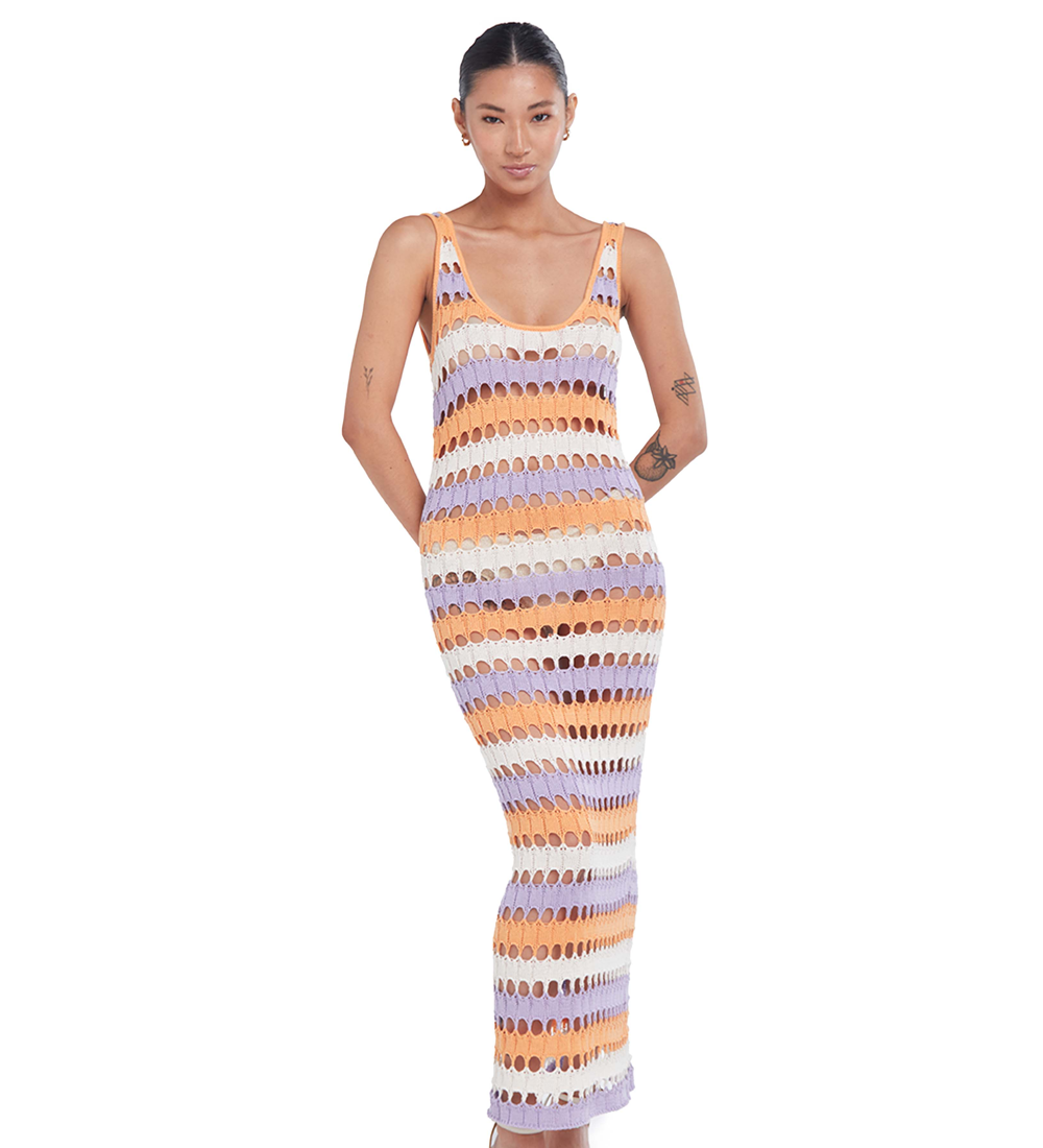 Sara Multicolor. Knitted dress with small holes that make it a fresh dress. Produced in a sustainable factory.