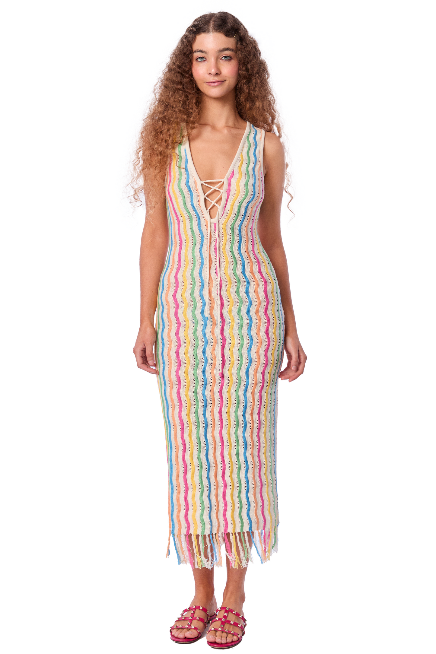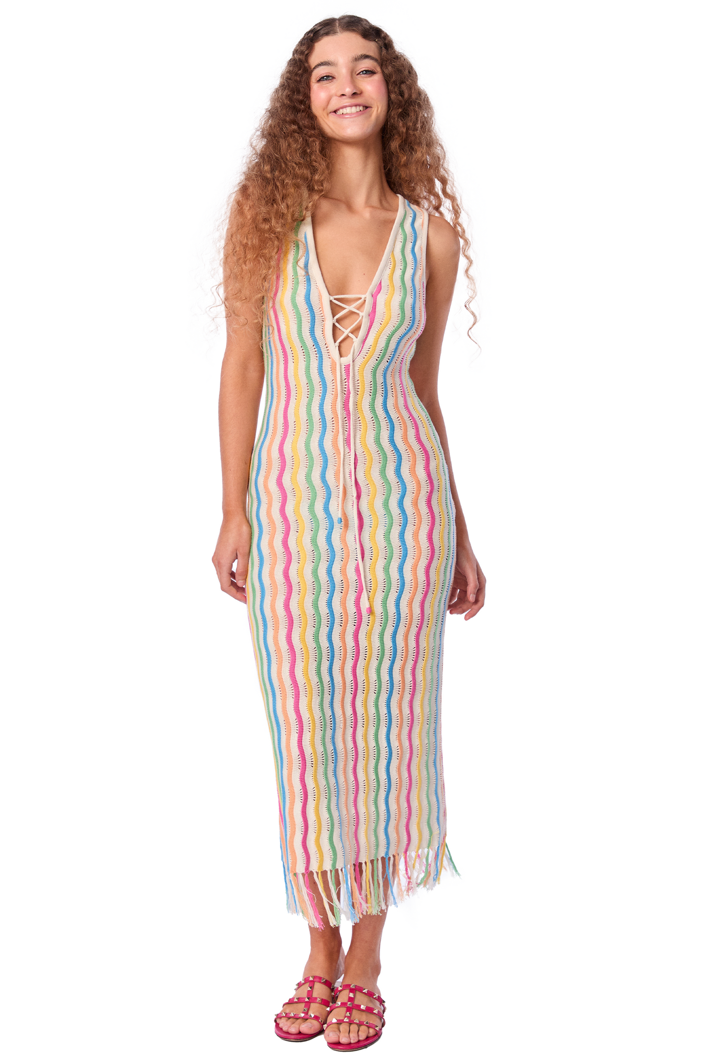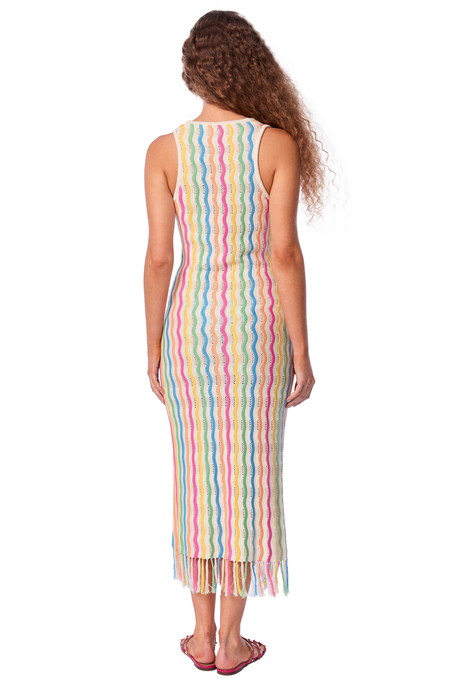 Our Alondra Pink dress is designed with delicate wave details throughout the fabric and thin straps that add a touch of elegance and sophistication. Perfect for highlighting your unique style.