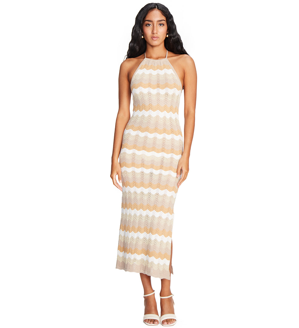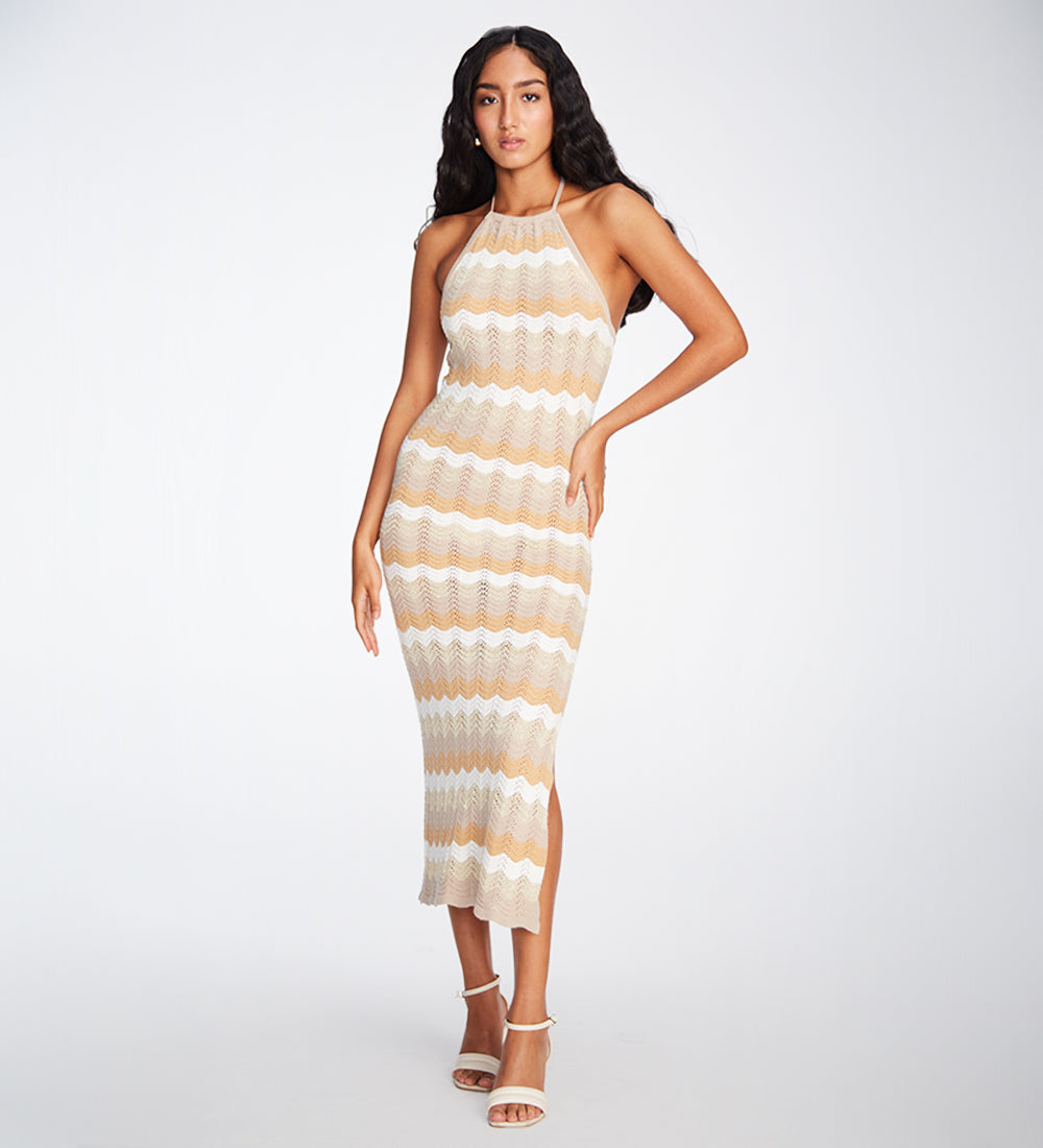 Cornelia Beige Wavy Maxi Dress